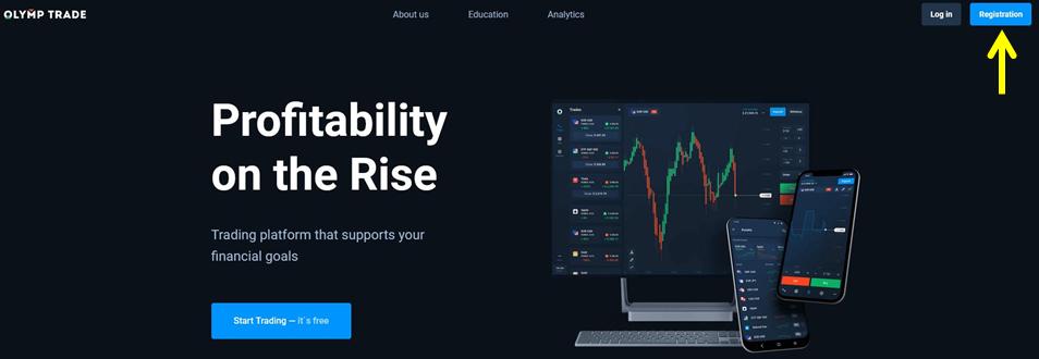 Pertama, Anda perlu membuat akun untuk bertrading di Olymp Trade dengan mengklik kotak pendaftaran di bawah ini. Kemudian, klik “Pendaftaran” di sudut kanan atas layar.