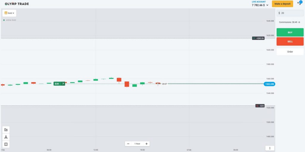 Contoh, setelah memasukkan order Buy dengan investasi sebesar $20 pada aset Emas pada harga 1555, platform akan menunjukkan level harga yang harus menurun sehingga di level tersebut investasi Anda akan mengalami kerugian. Sebaliknya, jika Anda membuka order Sell, Anda akan tahu seberapa besar harga harus dinaikkan sehingga Anda akan kehilangan semua investasi Anda.
