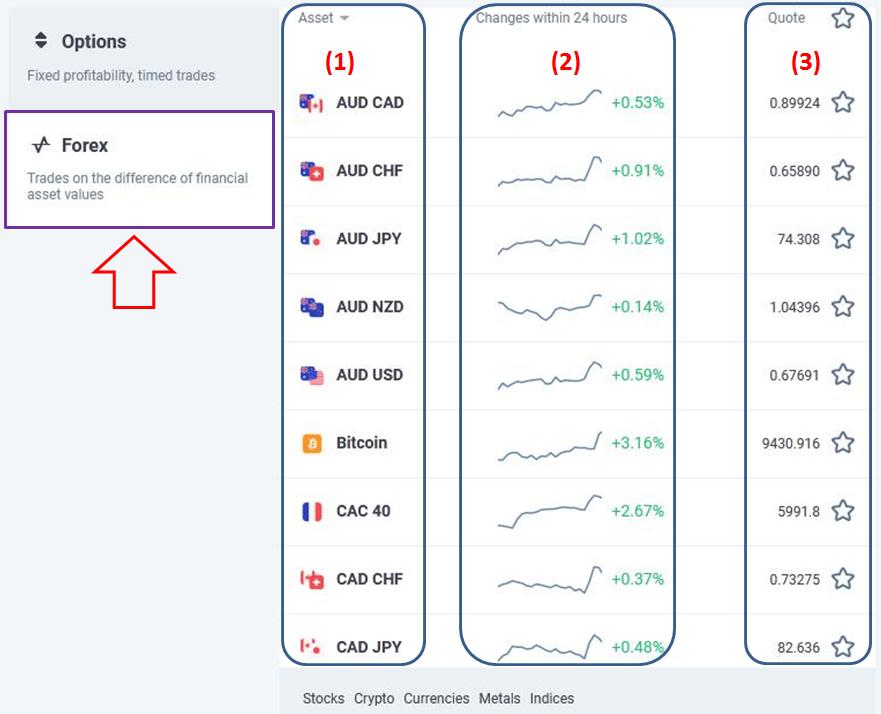 Setelah memilih saluran investasi (Forex), langkah selanjutnya adalah memilih aset yang ingin Anda investasikan untuk mendapatkan profit.