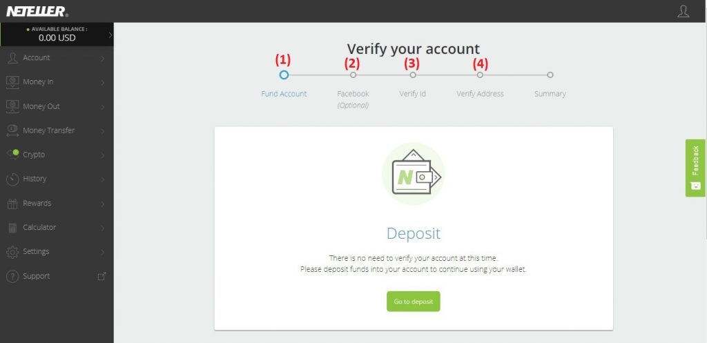 Neteller tidak mewajibkan Anda untuk menautkan ke akun Facebook Anda. Namun jika Anda menautkan, maka akan menghemat waktu dalam langkah Memverifikasi ID dan Alamat.