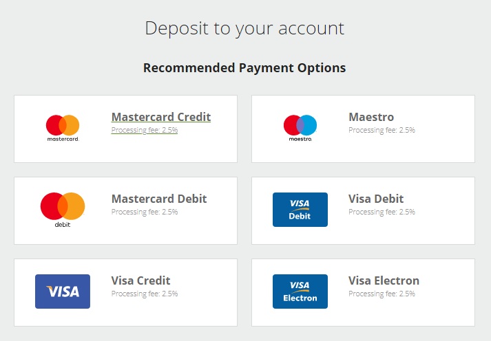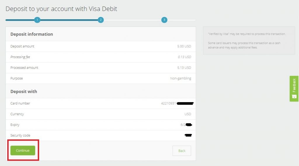 Neteller meminta Anda memasukkan minimum sebesar $5 untuk memverifikasi akun Anda. Tarif sebesar 2.5% saat ini sama untuk semua jenis kartu atau wallet, jadi Anda harus membayar tambahan 0.13 USD untuk biaya transfer.