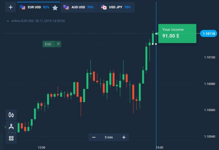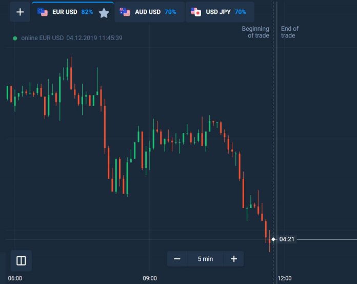 Langkah 2: Grafik kandil Jepang 5 menit dan waktu kadaluwarsa 5 menit.