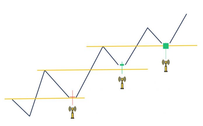 Ini adalah situasi ideal bagi Anda untuk mengonfirmasi Uptrend. Namun tidak selalu seperti itu, Uptrend terbentuk saat harga terus-menerus naik. Menciptakan bottom dan top selanjutnya yang lebih tinggi dibandingkan sebelumnya.