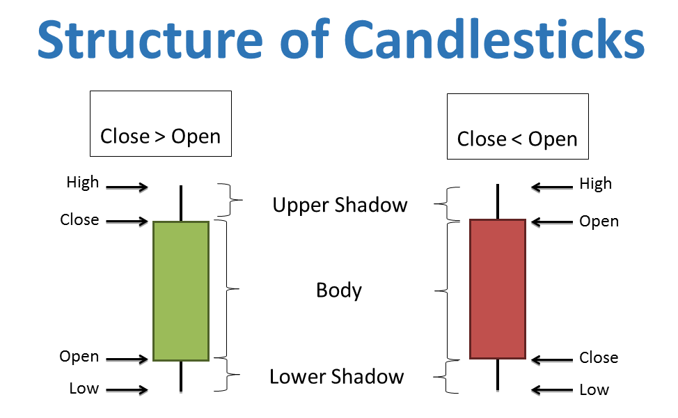 Bagian atas dari tiap kandil berkorespondensi dengan yang tertinggi (HIGH) dan terendah (LOW) dalam jangka aktu yang menciptakan kandil. Lower shadow disebut lower shadow. Upper shadow disebut upper shadow.