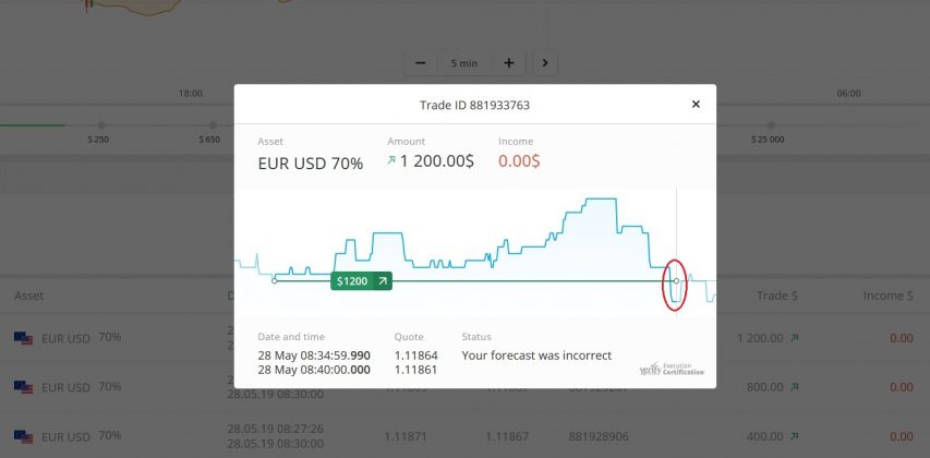 Alasan dia kehilangan uangnya: trade berbalik arah + bertrading berturut-turut + menambahkan uang terlalu banyak. Semuanya terjadi dalam waktu kurang dari 10 menit. 3 hal paling bodoh saat berFixed Time Trade ada dalam trade di atas. Trade berbalik arah menyebabkan psikologi untuk bertrading berturut-turut dan menambahkan uang terlalu banyak. Saat otak terlalu penuh dan emosi menguasai semuanya, kehilangan uang itu sudah pasti.